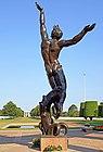 At the center is a 22-foot bronze statue entitled The Spirit of American Youth Rising from the Waves by Donald De Lue.