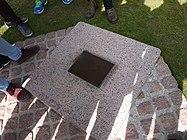 Embedded in the lawn directly opposite the entrance to the old Visitors' Building is a time capsule which has been sealed and contains news reports of the June 6, 1944 Normandy landings. The capsule is covered by a pink granite slab upon which is engraved: To be opened June 6, 2044. Affixed in the center of the slab is a bronze plaque adorned with the five stars of a General of the Army and engraved with the following inscription: 'In memory of General Dwight D. Eisenhower and the forces under his command. This sealed capsule containing news reports of the June 6, 1944 Normandy landings is placed here by the newsmen who were here, June 6, 1969.[10]