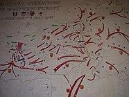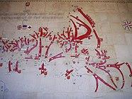 The Memorial consists of a semicircular colonnade with a loggia at each end containing maps and narratives of the military operations. It is built in medium-hard limestone from upper Burgundy. Two of the maps, designed by Robert Foster, are 32 feet long and 20 feet high.