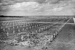 On June 8, 1944, the 607th Quartermaster Graves Registration Company of the U.S. First Army established the temporary cemetery, the first American cemetery on French soil in World War II.[3] After the war, the present-day cemetery was established a short distance to the east of the original site.