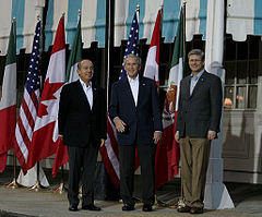 The North American Leaders' Summit (NALS), sometimes called the Three Amigos Summit in the popular press,[1][2][3] is the trilateral summit between the Prime Minister of Canada, the President of Mexico, and the President of the United States.[4] The summits were initially held as part of the Security and Prosperity Partnership of North America (SPP), a continent-level dialogue between the three countries established in 2005, and continued after SPP became inactive in 2009.[5][6]
