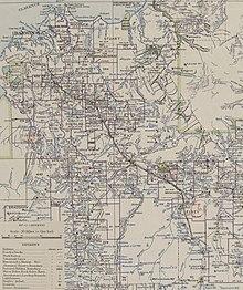 Between 1863 and 1911 the Northern Territory was administered by the Government of South Australia.[2]:11, 174 In 1883, that government instituted the Palmerston and Pine Creek Railway Act,[3] which resulted in a £959,300 contract being awarded to C. & E. Millar of Melbourne. The line reached Pine Creek in 1888 and officially opened on 30 September 1889 as the northernmost outpost of the South Australian Railways.[4] Singhalese and Indian gangs did the grubbing and earthwork and 3,000 Chinese labourers laid more than a kilometre of track per day. A total of 310 bridges and flood openings were built.[note 1]
