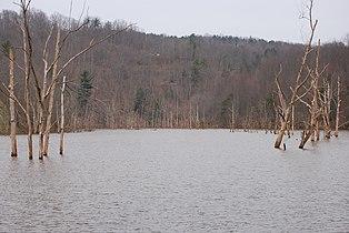 North Bend State Park sits on 2,459 acres (995 ha)[2] along the North Fork of the Hughes River in Ritchie County near Cairo, West Virginia. The park is named after the sharp bend in the river that the formed three sides of the original park boundary. The North Bend Rail Trail, a 72-mile (116 km) hiking and biking corridor, is also managed as a unit of the park. A new 305 acre (1.23 km²) lake was recently added to the park.