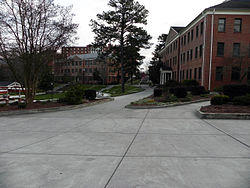 The campus is located about a mile south of downtown Durham, North Carolina and about three miles east of Duke University. Eleven buildings built before 1940 are included in a national historic district. All of the buildings, except for the three residences, are Georgian Revival-style buildings; they have contemporary fireproof construction with steel trusses and brick exterior walls. They include the James E. Shepard Administration Building, Alexander Dunn Hall, Annie Day Shepard Hall, and five institutional buildings built in the late 1930s under the auspices of the Public Works Administration.[9] The campus was listed on the National Register of Historic Places in 1986.[2]