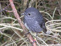 The North Island robin (Petroica longipes) is a species of Australasian robin endemic to the North Island of New Zealand. It and the South Island robin (P. australis) of the South Island and Stewart Island were once considered conspecific (and called the "New Zealand robin"), but mitochondrial DNA sequences have shown that the two lineages split prior to the Pleistocene, and support the classification as two different species.[2]