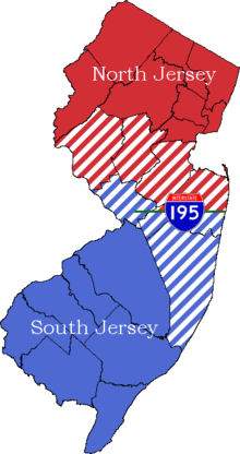 - ^ a b Mikle, Jean (March 31, 2008). "An invisible boundary divides N.J." Home News Tribune. Retrieved January 12, 2010.("Of course, part of the problem with understanding New Jersey's enduring regional tension is that few residents can agree on where the northern half of the state end and the southern half begins.")