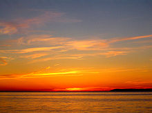 North Manitou Island is located in Lake Michigan, approximately 12 miles (19 km) west-northwest of Leland, Michigan.[1] It is nearly eight miles long and over four miles (6 km) wide, with 20 miles (32 km) of shoreline. It has a land area of 57.876 km2 (22.346 sq mi) and has no population. The smaller South Manitou Island lies to its southwest.