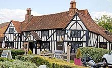 Apart from the church the oldest existing building in the parish is probably Tylers. This is a timber-framed and plastered house consisting of a central block with a gabled cross-wing at each end. It may date from the 16th century but there is some evidence that the central block was an earlier open hall with a screens passage at its south-west end. The 'King's Head' at Weald Gullet is a timber-framed building probably of the same period. It was restored about 1927. Two ancient timber-framed cottages which formerly stood on the north side of the main road near the end of Church Lane were destroyed in a German air raid in 1941.[5]