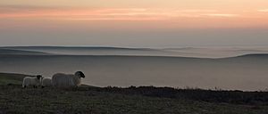Sheep are a ubiquitous part of the moorland landscape. Their grazing helps to maintain the open wild landscape that is needed for many other plants and animals to thrive.[15]