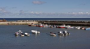 Sandy shores harbour a variety of plants and animals which are buried in the sand. Birds such as curlews and oyster catchers are to be seen prodding the sand to find these creatures for food. A few cormorants and fulmars breed along the coast where stonechats and rock pipits can also be spotted. Herring gulls are the commonest breeding birds and are an interesting sight nesting in the chimneys of coastal towns.[15]