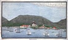 In 1784, Grigory Ivanovich Shelikhov arrived in Three Saints Bay on Kodiak Island, operating the Shelikhov-Golikov Company.[4] Shelikhov and his men killed hundreds of indigenous Koniag, then founded the first permanent Russian settlement in Alaska on the island's Three Saints Bay. By 1788 a number of Russian settlements had been established by Shelikhov and others over a large region, including the mainland areas around Cook Inlet.