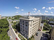 Four Catholic high schools are located in northeastern Pennsylvania. They include Holy Cross High School in Dunmore, which primarily serves Lackawanna County, Luzerne County, Wayne County, Pike County, Susquehanna County, Wyoming County, and Monroe County. The second school is Holy Redeemer High School in Wilkes-Barre, which serves primarily Luzerne County and Wyoming County. The third school is Notre Dame High School, which is located in Stroudsburg. It primarily serves Monroe County. The fourth school is Our Lady of Lourdes Regional School, which is located near the city of Shamokin.