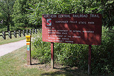 The Torrey C. Brown Rail Trail (TCB), the official name of the Northern Central Railroad (NCR) Trail, is a rail trail that runs along an abandoned railroad corridor where the Northern Central Railway once operated. The trail extends 20 miles from Ashland Road in Cockeysville, Maryland to the boundary with Pennsylvania. At the Pennsylvania line, the Torrey C. Brown Trail becomes the York County Heritage Rail Trail (part of BicyclePA Route J) and continues to the city of York.[1]