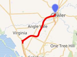 | Waterloo Corner, Virginia | 21 | 13 | Southbound can continue on the North–South Motorway or Port Wakefield Road. Northbound traffic can enter from the North–South Motorway or from southbound Port Wakefield Highway. | |||