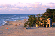The Northern Indiana landscape is physically characterized by very flat to very rolling terrain, ranging from 600 to 1,000 feet (180 to 300 m) above sea level. Glacial kettle lakes are found throughout Northeast Indiana, with sand dunes sharing the Lake Michigan shoreline with heavy industry in the northwest. Kosciusko County is home to the largest natural lake (Wawasee) and deepest natural lake (Tippecanoe) in the state of Indiana. The Eastern Continental Divide runs through the region following the top of the Valparaiso Moraine. Besides a few urban areas, much of Northern Indiana lies in the agricultural Corn Belt.