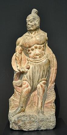 The Northern Qi, although founded by a ruler of mixed Han/Xianbei origin, strongly asserted their Xianbei ethnic cultural identity. They regarded surviving ethnic Tuoba (themselves also Xianbei) and non-Chinese of the Northern Wei court and as well as literati of all ethnicities as near Chinese, referring to them as Han'er or Chinese kids (漢兒).[10] However they made use of Chinese and sometimes Central Asian courtiers.[17] While some Qi elite families had expressed strongly anti-Chinese sentiments due to unclear reasons, they may also lay claim to Chinese elite origin.[8] Emperor Wenxuan's father Gao Huan himself, who was reported as having said to his soldiers in the Xianbei language: "You guys are our proud military men and the lowly Chinese are just your working slaves",[18][19] was descended from the Chinese Gao family of Bohai (渤海高氏) in what is now modern Hebei.[20] He had become Xianbeified as his family had lived for some time in Inner Mongolia after his grandfather was relocated from Bohai.[21][22]