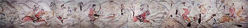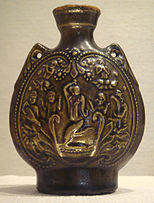 Northern Qi ceramics mark a revival of Chinese ceramic art, following the disastrous invasions and the social chaos of the 4th century.[13] Northern Qi tombs have revealed some beautiful artifacts, such as porcelain with splashed green designs, previously thought to have been developed under the Tang dynasty.[11]