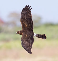 The northern harrier has been split from the hen harrier by some taxonomists based on genetic analysis.[5] It breeds in North America and its closest relative is the Cinereous Harrier (C. cinereus). The male's plumage is darker grey than that of the hen harrier and the female is also darker and more rufous.[3] The adult male is sometimes nicknamed the "Grey Ghost", because of his striking plumage and spectral aura.[6][7]