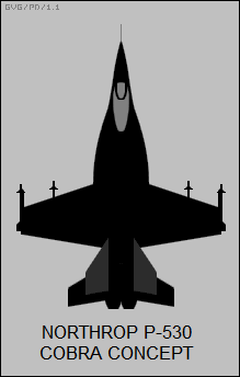 The aircraft's main design elements date to early 1965, from the internal Northrop project N-300. The N-300 was derived from the F-5E, and features a longer fuselage, small leading-edge root extensions (LERX), and more powerful GE15-J1A1 turbojets, rated at 9,000 lbf (40 kN). The wing position was raised slightly to increase ground clearance for ordnance. The N-300 further evolved into the P-530 Cobra, which uses 13,000 lbf (58 kN) GE15-J1A5 engines, with a very small .25 bypass ratio leading to the nickname "leaky turbojet". The bypass air was required for cooling the afterburner and nozzle and the cool bypass duct surface allowed the engine bay to be constructed of lighter, cheaper materials.[1]