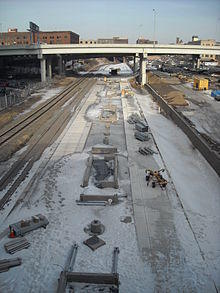The Minnesota Department of Transportation (Mn/DOT) and the Northstar Corridor Development Authority (NCDA) studied options for development of the corridor to handle the increasing commuter load and felt that a commuter rail line was the best option. It was expected to cost about US$265 million in 2008 dollars, estimated to be less than one-third the cost of upgrading existing highways,[13][14] though the cost would later climb to $317 million.[12] Because almost all of the route being used already existed, the investment mostly went into building new stations, upgrading track, enhancing the safety of crossings, and updating signals. A significant portion of the funds were to extend the METRO Blue Line to the Target Field station on the west side of Interstate 394 and 5th Street. This terminal station is integrated into the Minnesota Twins' new ballpark, Target Field, which opened in March 2010.
