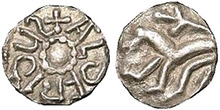 When coinage (as opposed to bartering) regained popularity in the late 600s, Northumbrian coins featured kings' names, indicating royal control of currency. Royal currency was unique in Britain for a long time. King Aldfrith (685–705) minted Northumbria's earliest silver coins, likely in York. Later royal coinage bears the name of King Eadberht (738–758), as well as his brother, archbishop Ecgbert of York.[121] Later kings and archbishops minted coins until the Danish conquest of York in 866/7.[122] These coins were primarily small silver sceattas, more suitable to small, everyday transactions than larger gold Frankish or Roman coins.[123] They were not a fiat currency, but rather valued by the mass of the silver itself. Larger bullion values can be seen in the silver ingots found in the Bedale Hoard, along with sword fittings and necklaces in gold and silver.[124]
