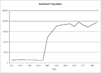 The population of Northwich in 1664 has been estimated as 560.[5] The population of Northwich over the last 200 years has been: