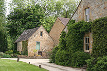 The majority of the houses and cottages in the village are made from the local stone, hamstone, which is taken from the nearby Ham Hill, from which the village gets its name: Norton sub Hamdon means "north farm below the hill farm".[3]