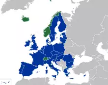 Location of the Kingdom of Norway (green) in Europe (green and dark grey) | |