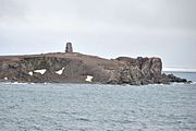 The Russians knew of Novaya Zemlya from the 11th century, when hunters from Novgorod visited the area.[12] For Western Europeans, the search for the Northern Sea Route in the 16th century led to its exploration.[12] The first visit from a Western European was by Hugh Willoughby in 1553.[12] Dutch explorer Willem Barentsz reached the west coast of Novaya Zemlya in 1594, and in a subsequent expedition of 1596, he rounded the northern cape and wintered on the northeastern coast.[13] (Barentsz died during the expedition, and may have been buried on Severny Island.[14]) During a later voyage by Fyodor Litke in 1821–1824, the western coast was mapped.[12] Henry Hudson was another explorer who passed through Novaya Zemlya while searching for the Northeast Passage.[15]