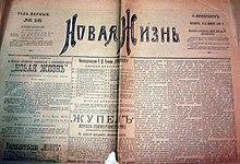 Novaya Zhizn (Russian: Новая Жизнь, New Life) was the first legal Bolshevik daily newspaper.[1] It was founded by Alexander Bogdanov[2] and its first editor was Nikolai Minsky. It was first published in October, 1905, in Petersburg, under the guidance of Lenin.[1] It was published until December 1905.