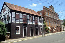 In the historical centre which is located in the Hamburgo Velho neighbourhood, there are still some half-timbered buildings constructed in the same technique, as the Community Schmitt-Presser Museum (first exemplary technique protected by IPHAN in Brazil). There are also the works of the German architect Ernst Seubert, some of his known buildings are the Church of Reis Magos (IECLB), the Church of Our Lady of Mercy, Bakery Reiss ("Padaria Reiss"), Schmitt House ("Casa Rosa") and Municipal Public Library Machado De Assis. Also noteworthy is the neoclassical building of the Ernesto Frederico Scheffel Foundation.