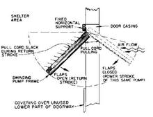 "Some shelters will become dangerously hot in a few hours."[7] The Kearny air pump (for which a design is included in the appendix) is recommended, with natural ventilation considered typically inadequate, and electric pumps considered unreliable and prone to heating the air.[8] Filters are considered unnecessary, "the hazards from fallout particles carried into shelters by unfiltered ventilating air are minor compared to the dangers from inadequate ventilation."[7]