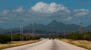 The eastern sector of Margarita Island has three small mountain ranges, aligned in a southeast–northwest direction, whose altitude stops are the Copey,[11] Matasiete, La Guardia and Guayamurí hills; To the southwest, the relief is flat, with the exception of moderate elevations, known as Las Tetas de María Guevara. The Macanao Peninsula, in the western sector, has an elongated east–west massif, between the Macanao and Guarataro hills. The rest are coastal plains that descend towards wide-ranging beaches. The islands of Coche and Cubagua offer a flat terrain with some cliffs.