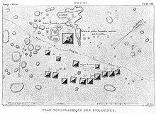The pyramids of Nuri are built on two separate plateaus. The highest point in the cemetery is taken up by Taharqa's pyramid on the western plateau. The pyramids of the other kings are located on the eastern plateau. The pyramids of the royal women are placed closer to Taharqa's pyramid on the western plateau. These pyramids fall into three groups: (1) A group of pyramids is located to the south and west of Taharqa's pyramid; (2) Two parallel rows are located to the north of Taharqa's pyramid; (3) A group of very small tombs is located to the far north.