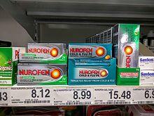 In March 2015, the Australian Competition and Consumer Commission (ACCC) launched proceedings against Reckitt Benckiser; for misleading advertising for its targeted pain range. In December 2015, the Federal Court of Australia found that Reckitt Benckiser, which makes Nurofen, had misled consumers with its "Nurofen Specific pain range", and ordered that all Nurofen specific pain products be removed from retail sale within three months.[27] A spokeswoman for Reckitt Benckiser argued that, "[This] specific-pain range" was intended "to help consumers navigate their pain relief options, particularly within the grocery environment where there is no healthcare professional to assist decision making".[28] The ACCC said that the products were found to be "no more effective at treating the type of pain described on its packaging than any of the other Nurofen specific pain products", and sold for almost twice the price.[29] Specific pain range painkillers include Nurofen Back Pain, Nurofen Period Pain, Nurofen Migraine Pain and Nurofen Tension; and all contain the "same active ingredient, 342 milligrams of ibuprofen lysine".[28]