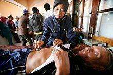 Nursing historians face the challenge of determining whether care provided to the sick or injured in antiquity was nursing care.[3] In the fifth century BC, for example, the Hippocratic Collection in places describes skilled care and observation of patients by male "attendants," who may have been early nurses.[4] Around 600 BC in India, it is recorded in Sushruta Samhita, Book 3, Chapter V about the role of the nurse as "the different parts or members of the body as mentioned before including the skin, cannot be correctly described by one who is not well versed in anatomy. Hence, any one desirous of acquiring a thorough knowledge of anatomy should prepare a dead body and carefully, observe, by dissecting it, and examine its different parts."