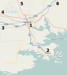 The rural localities of Sjösa, Bergshammar, Svalsta and Enstaberga located within 10 kilometres (6.2 mi) are connected to the city centre by cycle tracks with permanent floodlightning. In addition there is a nature and coastal area called Tjuvholmen east of the city centre that is part of the locality with many holiday homes. Tjuvholmen lacks an asphalted access road and is in general seen as a rural area in spite of its proximity to the city centre. East of Arnö on the southern shore there are similar areas such as Örstig which is connected by asphalt road and cycle tracks to Arnö and Nyköping. Other nearby rural areas on the southern shore include holiday home areas such as Linudden and Örstigsnäs and also the coastal camping place of Strandstugeviken. There is also lighted cycling tracks all the way south roughly 15 kilometres (9.3 mi) to neighbouring city Oxelösund, making pedestrian and biking transport to nearby areas effective and avoids potentially dangerous contacts with motor vehicles.