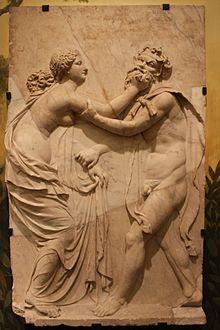 Other nymphs, always in the shape of young maidens, were part of the retinue of a god, such as Dionysus, Hermes, or Pan, or a goddess, generally the huntress Artemis.[1] Nymphs were the frequent target of satyrs.