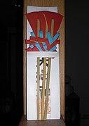 A sakasafuda (逆札 'reverse fuda'), a handmade talisman against theft displayed upside-down. This ofuda is inscribed with the date the legendary outlaw Ishikawa Goemon supposedly died: 'the 25th day of the 12th month' (十二月廿五日).[a][45] Other dates are written in other areas, such as 'the 12th day of the 12th month' (十二月十二日), which is claimed to be Goemon's birthdate.[44]