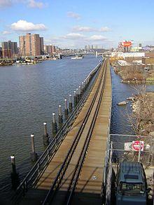Looking northwest from Robert F. Kennedy Bridge with the Harlem River Yard in the background. Green containers on train are for hauling municipal solid waste (trash). | |||||||||||||||||||||||||||||||||||||||||||||||||||||||||||||||||||||||||||||||||||||||||||||||||||||||||||||||||||||||||
