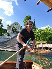 The pletna of Slovenia is rowed forward in the standing position with two oars.