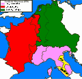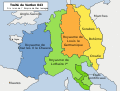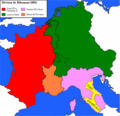 Centuries after the fall of the Western Roman Empire, Charlemagne, who had conquered much of its former territory, announced its restoration. Upon his death, he passed this realm to his son Louis the Pious, who would in turn pass it to his firstborn son Lothair I. However, the latter's brothers—Charles and Louis—refused to recognize him as their suzerain. When Lothair attempted to invade their lands, they allied against him and defeated him at the Battle of Fontenoy in June 841. Charles and Louis met in February 842 near modern Strasbourg[4] to affirm their alliance by swearing a joint oath against Lothair.[5] The following year the civil war would end with the Treaty of Verdun, in which the three claimants partitioned the Empire amongst themselves.