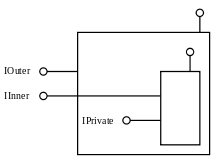 In Microsoft's Component Object Model, aggregation means that an object exports, as if it were their owner, one or several interfaces of another object it owns. Formally, this is more similar to composition or encapsulation than aggregation. However, instead of implementing the exported interfaces by calling the interfaces of the owned object, the interfaces of the owned object themselves are exported. The owned object is responsible for assuring that methods of those interfaces inherited from IUnknown actually invoke the corresponding methods of the owner. This is to guarantee that the reference count of the owner is correct and all interfaces of the owner are accessible through the exported interface, while no other (private) interfaces of the owned object are accessible.[6]