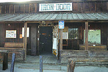 The Split Mountain Store and the Iron Door are located about 1 mile (1.6 km) south of Highway 78 on Split Mountain Road. Both of these businesses are open part-time during the summer and full-time during the cooler months. The Split Mountain Store stocks groceries, beer, and parts for sand buggies and trucks. The Iron Door, a small bar, has a private club, two pool tables and serves beer, wine and some food. Local artifacts are on display in the bar, where several layers of decorated dollar bills are stapled to the walls.