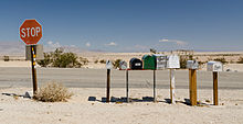 Ocotillo Wells County Airport offers two dirt runways.[1] Runway extents are marked by white paving blocks. The Los Puertecitos Historic Site is on State Route 78 about 1.5 miles (2.4 km) west of the community.[2] Gasoline is available in Borrego Springs (17 mi or 27 km west), in Westmorland (18 mi or 29 km east) and at the Blu-In Cafe (3 mi or 4.8 km east). Gas may not always be available the Blu-In Cafe which, besides the gas station, operates a restaurant, store, and RV park. Gas has not been available at the Blu-In since 2011.