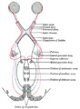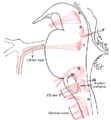![]() The cranial nerve nuclei schematically represented; dorsal view. Motor nuclei in red; sensory in blue. (Oculomotor is "III") | |