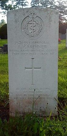 Over time, the third and fourth stanzas of the poem (usually now just the fourth) have been claimed as a tribute to all casualties of war, regardless of state.[1] This selection of the poem is often taken as an ode that is often recited at Remembrance Day services, and is what the term "Ode of Remembrance" usually refers to.[2]