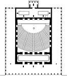 The two-story auditorium seated around 1,000 spectators and was equipped with a raised stage and marble-paved orchestra. On three sides it was surrounded by a subterranean cryptoporticus with stoae above. The building was decorated externally with Corinthian pilasters. The main entrance for spectators was originally on the south side of the building, with access from the terrace of the Middle Stoa. The north facade only had a small portico to give access to the stage.[1]