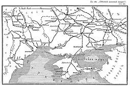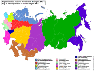 The Odessa Military District was established during the reforms of the Russian military minister Dmitry Milyutin. It was the second of two districts on the territory of the future Ukraine, the other being Kiev Military District. OVO existed from 1862–1918 as part of the Imperial Russian Armed Forces. It encompassed the territories of Kherson, Yekaterinoslav, Tauride, Bessarabia guberniyas. The district bordered Kingdom of Romania, Kiev Military District, Don Voisko Oblast, and Black Sea. In the 1870s and 1880s (until August 12, 1889) the Commander of the district served as the interim Governor General of Odessa city concurrently. In January 1918 the Odessa Military District headquarters was transformed into the headquarters of the Soviet Romanian Front under the jurisdiction of Rumcherod. With the establishment of the Ukrainian government on its territory, it was terminated. OVO was reinstated as the Ukrainian forces were pushed out the area in April to August 1919.
