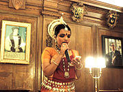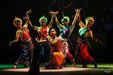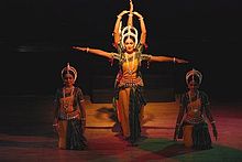 Odissi (Odia: Oṛiśī), also referred to as Orissi in older literature, is a major ancient Indian classical dance that originated in the Hindu temples of Odisha – an eastern coastal state of India.[1][2][3] Odissi, in its history, was performed predominantly by women,[1][4] and expressed religious stories and spiritual ideas, particularly of Vaishnavism (Vishnu as Jagannath). Odissi performances have also expressed ideas of other traditions such as those related to Hindu gods Shiva and Surya, as well as Hindu goddesses (Shaktism).[5] The theoretical foundations of Odissi trace to the ancient Sanskrit text Natya Shastra, its existence in antiquity evidenced by the dance poses in the sculptures of Odissi Hindu temples,[1][6] and archeological sites related to Hinduism, Buddhism and Jainism.[7][8][9] and was suppressed under the British Rule.[10][11] The suppression was protested by the Indians, followed by its revival, reconstruction and expansion since India gained independence from the colonial rule.[8]